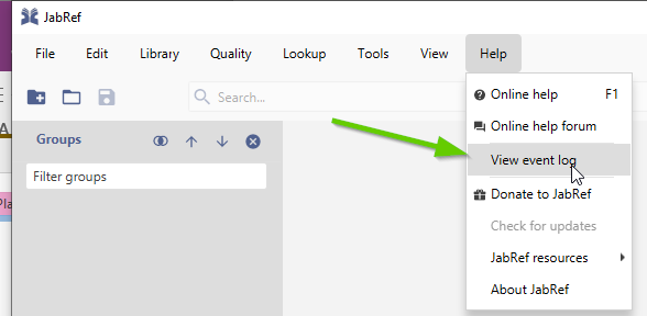 Show debug level messages. The log files are stored in an internal file. See FAQs for [Windows](https://docs.jabref.org/faq/windows#q-where-can-i-find-jabrefs-log-files), [Linux](https://docs.jabref.org/faq/linux#where-can-i-find-jabrefs-log-files), [macOS](https://docs.jabref.org/faq/osx#q-where-can-i-find-jabrefs-log-files) depending on your OS where to find it.