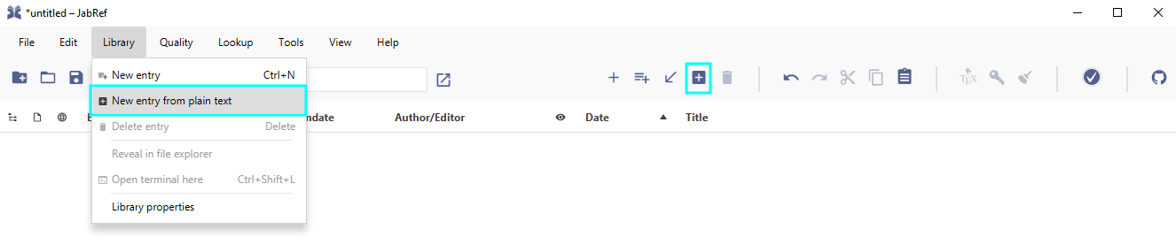 1. Click Library and select "New entry from plain text..." Alternatively, you can press Ctrl+Shift+N.