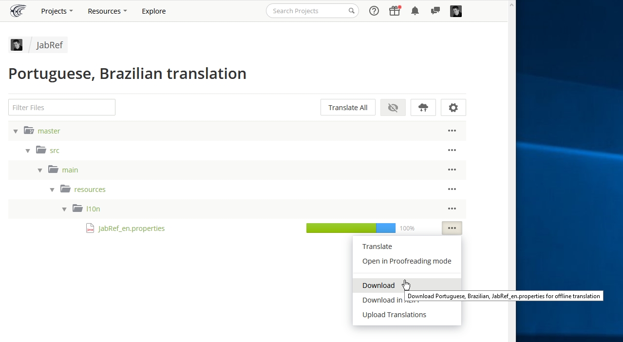 denotes the country code for the language). It contains all translations in a key/value format. In the JabRef source code tree, the property files reside in the /src/main/resources/l10n directory.