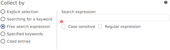 author) contains a certain keyword (e.g.Smith). This method does not require manual assignment of entries but uses information that is already present in the database.Free search expression. Similar to Searching for a keyword, but for several keywords in several fields.
