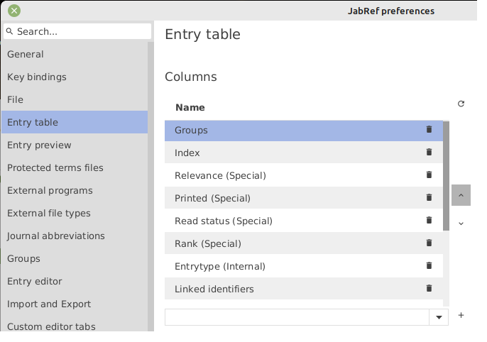 The "groups" column is displayed by default. Using the menu File → Preferences, tab Entry table, you can: