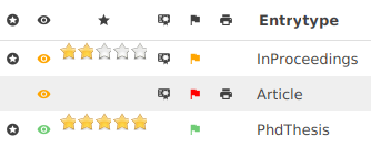 You can set the priority of an entry from low (red flag) to high (green flag). For example, you can use it to prioritize unread papers.