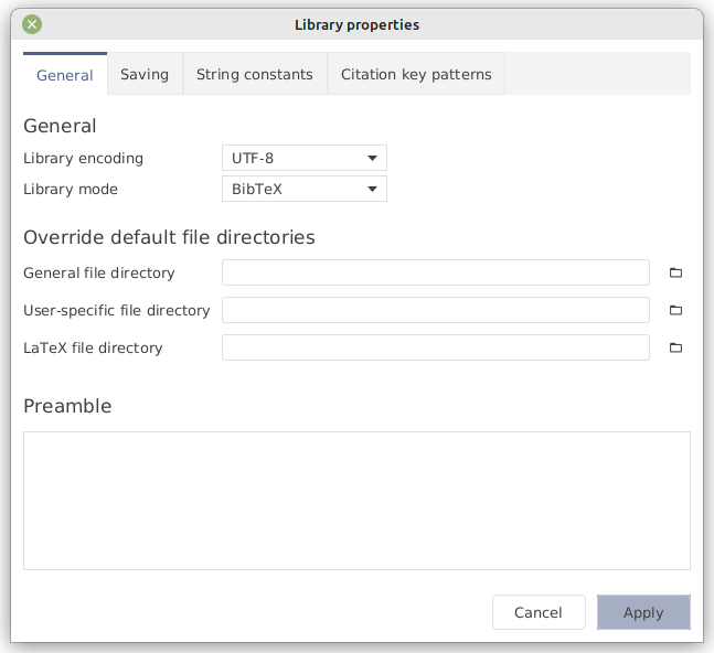 For your library, you can define a General file directory and a User-specific file directory. These settings override the main file directory defined in the Preferences dialog.