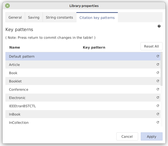 For shared SQL databases, some properties are not available as they are not handled like a .bib file. The following properties are not available:
